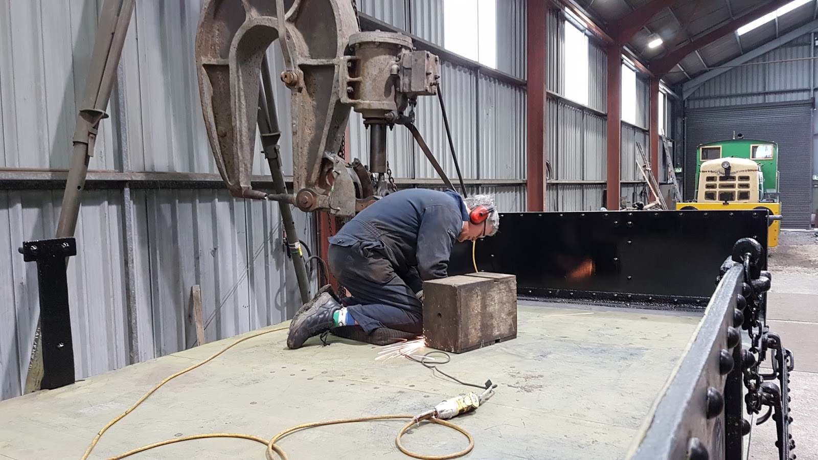 Meanwhile poor Dave A can never seem to catch a break from me and my camera. Here he is again, grinding down what look like the last of the rivets on the floor. Now that the Starfish is nearly finished he will need to find somewhere better to hide!